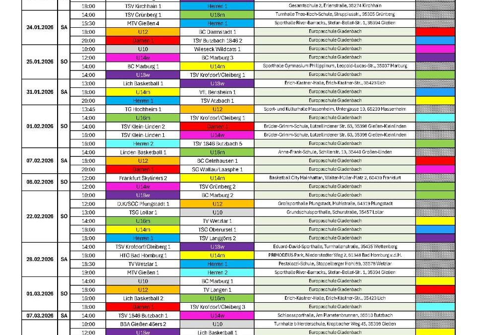 Der rote Ball rollt wieder: Basketballsaison des TV Gladenbach beginntSep. 2, 2025 Spielplan Basketball (Saison 2025-2026)