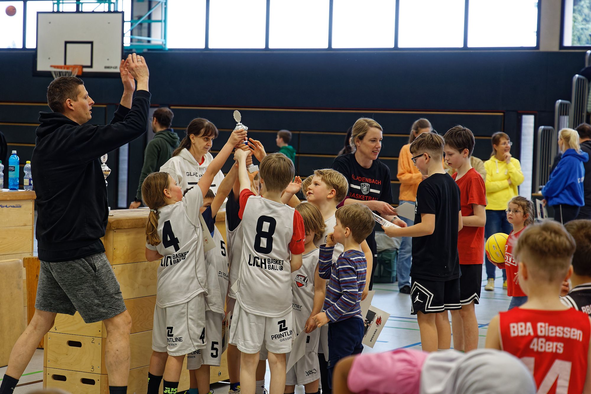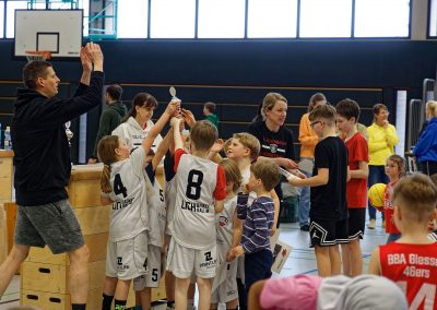 Am Samstag, dem 14. März 2026, haben die U8-Youngstars das große Finalturnier in Gladenbach ausgetragen. Neben zwei Mix-Mannschaften aus Gladenbach waren jeweils zwei Teams der „BBA Gießen“ und von „Lich Basketball“ sowie eine Mannschaft des „BC Gelnhausen“ und des „TV Hofheim“ am Start. Gespielt wurde in zwei 4er-Gruppen im Modus „Jede*r gegen Jede*n“. Anschließend wurden die Platzierungen ausgespielt. Den Turniersieg sicherte sich der „TV Hofheim“ im Finale gegen ein Team des TV Gladenbach. Als besondere Anerkennung erhielten alle Teams einen Pokal und jedes Kind eine Urkunde mit aktuellem Mannschaftsfoto. Wir danken allen teilnehmenden Vereinen, unserem Organisationsteam und den Eltern für die erstklassige Versorgung! Nach den Osterferien verabschieden wir den Jahrgang 2018 in die U10 und werden die U8-Turnierrunde auch in der nächsten Saison wieder mit voller Kraft vorantreiben.